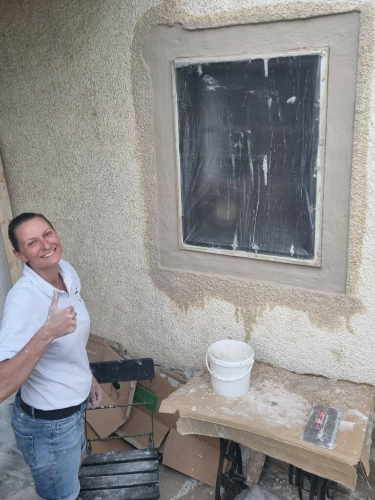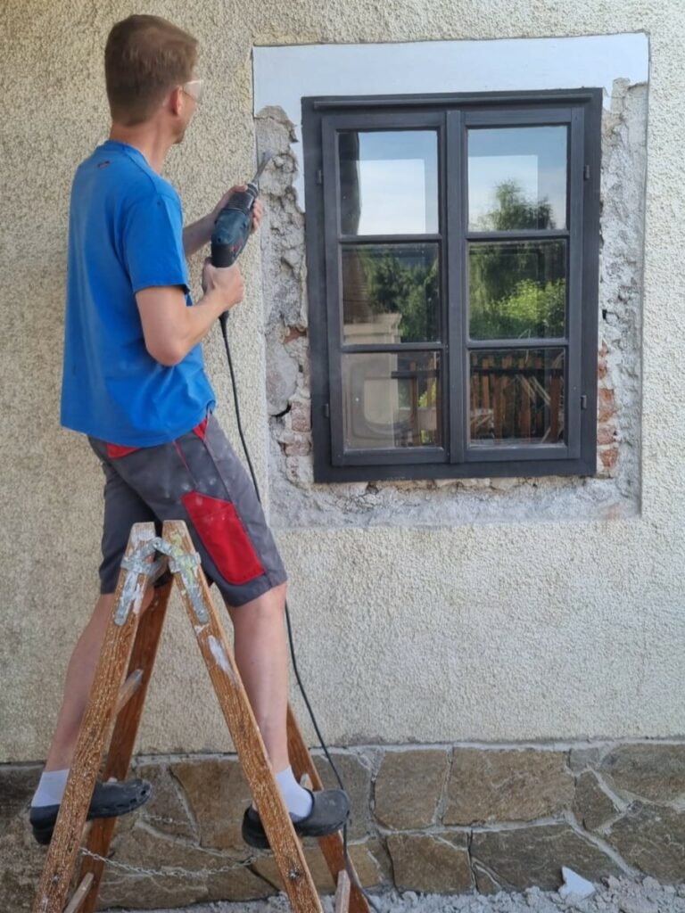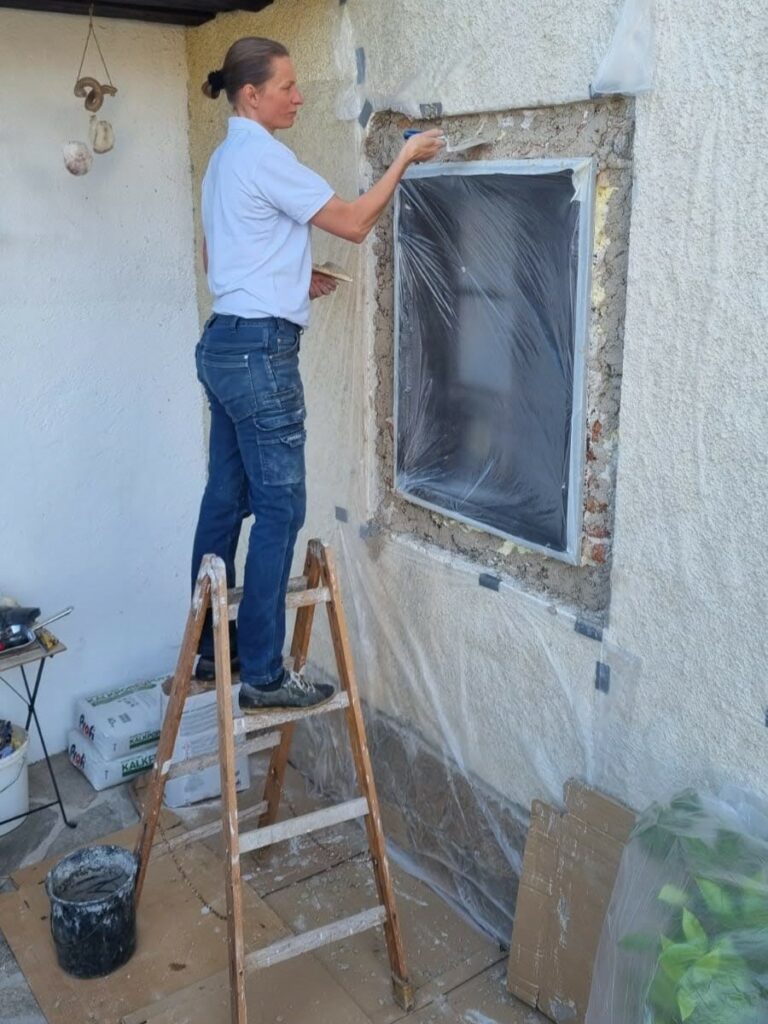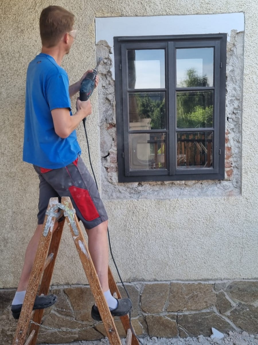 Da die Fensterfaschen teilweise abgebröckelt waren, mussten wir hier etwas gröber in die Substanz gehen. Sprich einmal alles runter und dann wieder neu aufbauen.